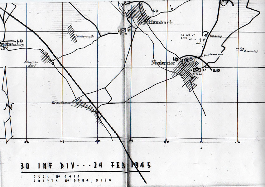 Battle Map of Rhine River crossing copied from National Archives...shows positions and objectives.