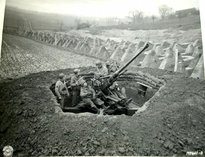 Dragons teeth of the Siegfried Line are seen in the background. 531st AAA