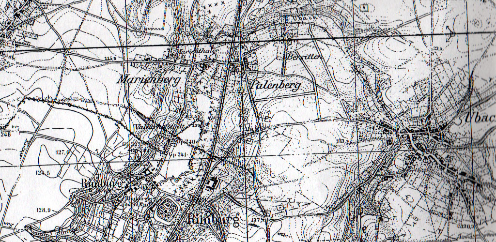 bridges were hidden, the town of Marienberg on the left, slag piles in the